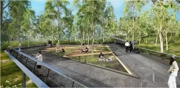 透过上下口平台优化森林公园绿地的园路布局,与相连接工程无缝衔接;打造出自然景观迷人、亮点突出的特色游憩廊道。