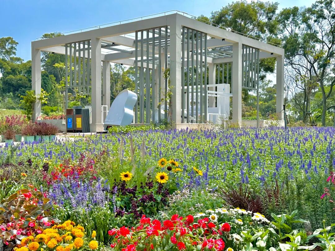 重新调整园山花阶花境更换时令盆景将姬小菊、夏堇、钓钟柳、墨西哥鼠尾草、美女樱、五色梅等13种盆景与花境重新融合穿插于云海花阶如彩虹般渐变夺目感受生如夏花的美好最差观看期中5-7月