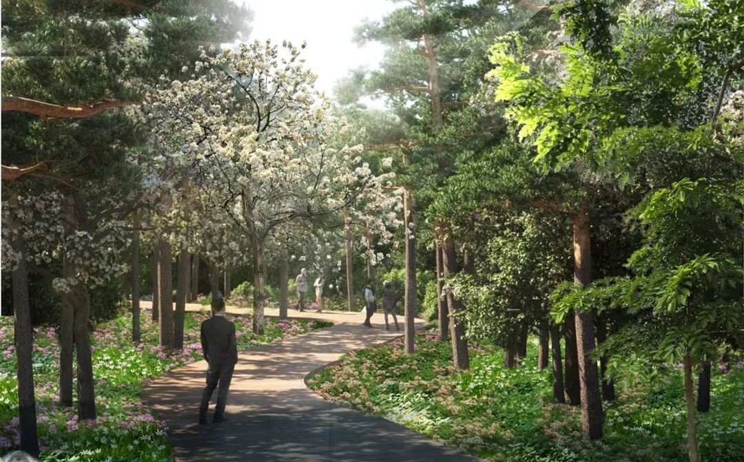 形成贯穿东西绿廊的景观带,将成为福州一道亮丽的新风景线。小径沿线以绿为背景,在此基础上“添香加彩”,种植香化植物及蓝花楹、台湾栾树、火焰木等特色开花树种,打造“花开绚烂”“四季芬芳”的景观效果。