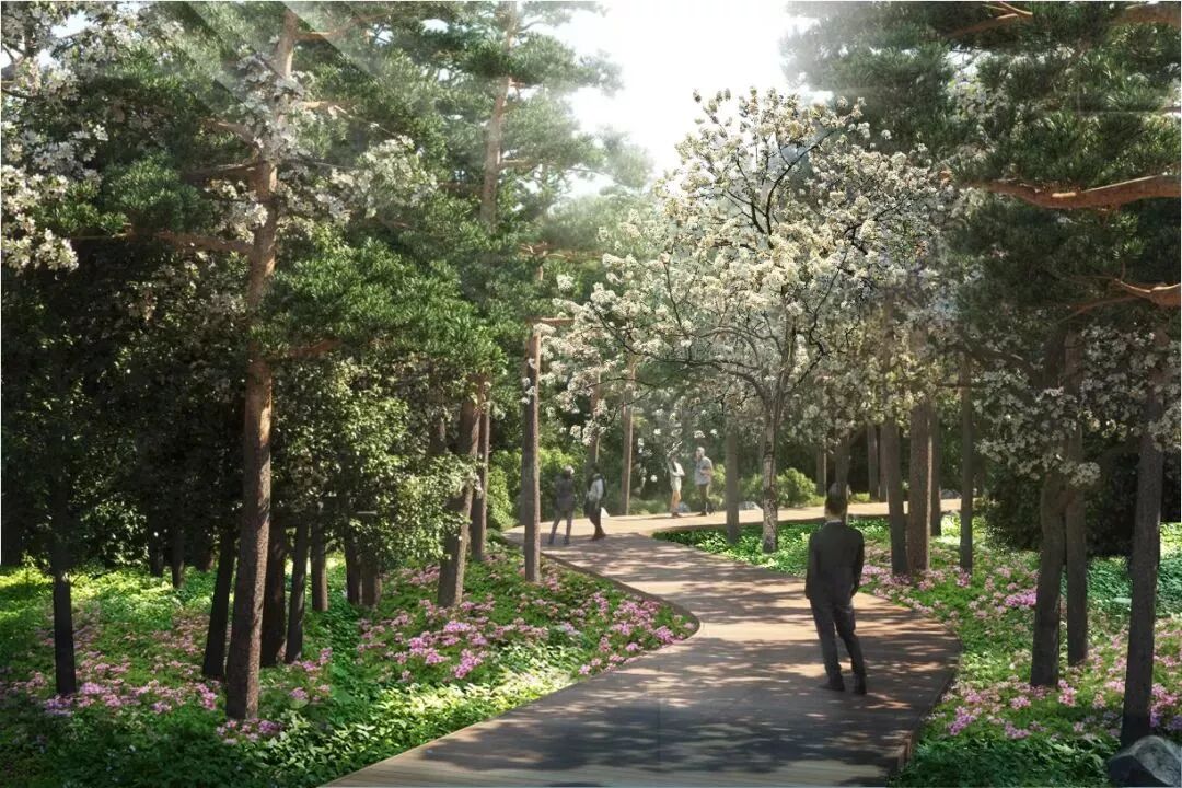 为确保项目理念先进,高标准建设小径,项目规划设计采用国际方案征集的方式,最后选择竞赛第一名丹麦-Dissing+weilitng(D+W)公司方案;同时结合现代科技,建设方便市民的智慧小径身心健康小径建设还将结合景观提升,对小径视线范围内的单一林相进行改造,让市民游客在小径休闲锻炼时,能够享受更加优美的绿化景观。