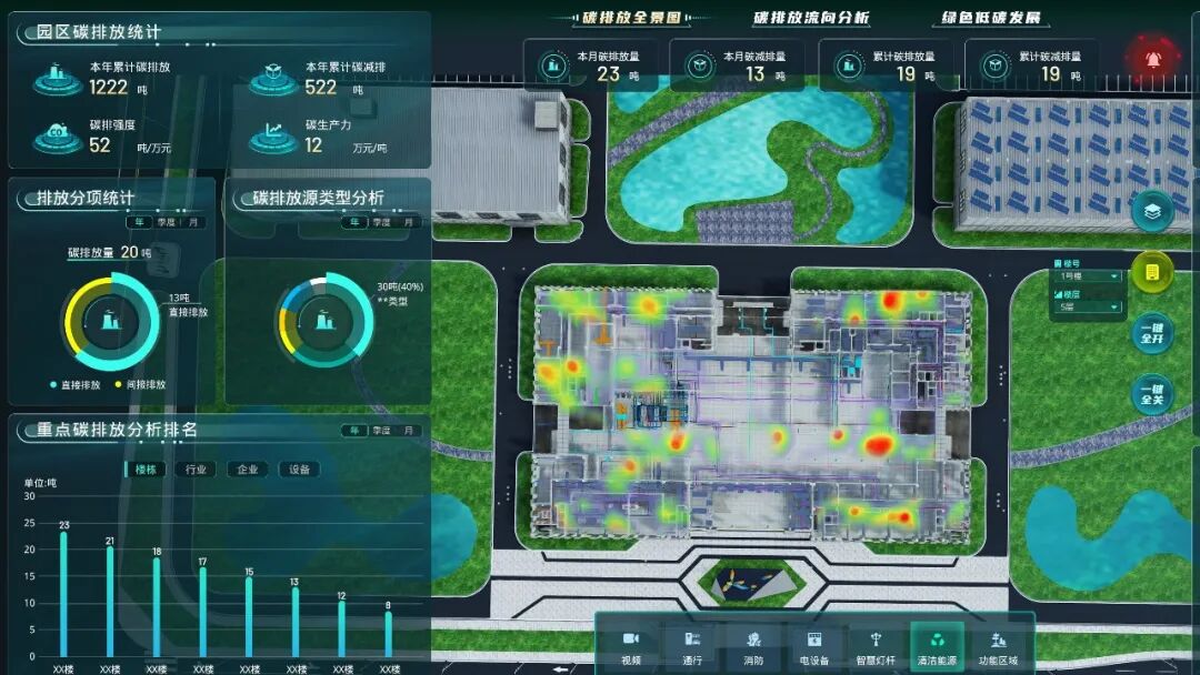 低碳智慧工业园区通过工程项目组技术革新提出的“可再生能源三阶”全业务流程软件系统,成功打造出了风光储柔性互补、冷热电多能耦合、工业园区级数字孪生、碳足迹实时追踪的低碳智慧工业园区。