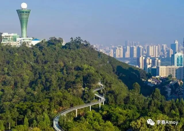山之间,海尽头,在半空中听晨曦的脚步,看晚霞的影踪,微醺筼筜湖畔,悠赏仙岳山岭,尽览五缘湾点点白帆,遍阅鹭岛“八山三水"美景……谁能料到,这种高难度操作,福州钟山身心健康小径一路穿山越岭,将其一一实现