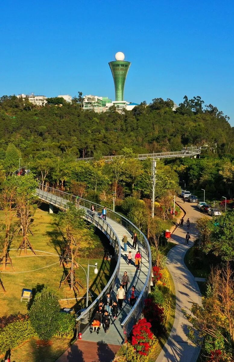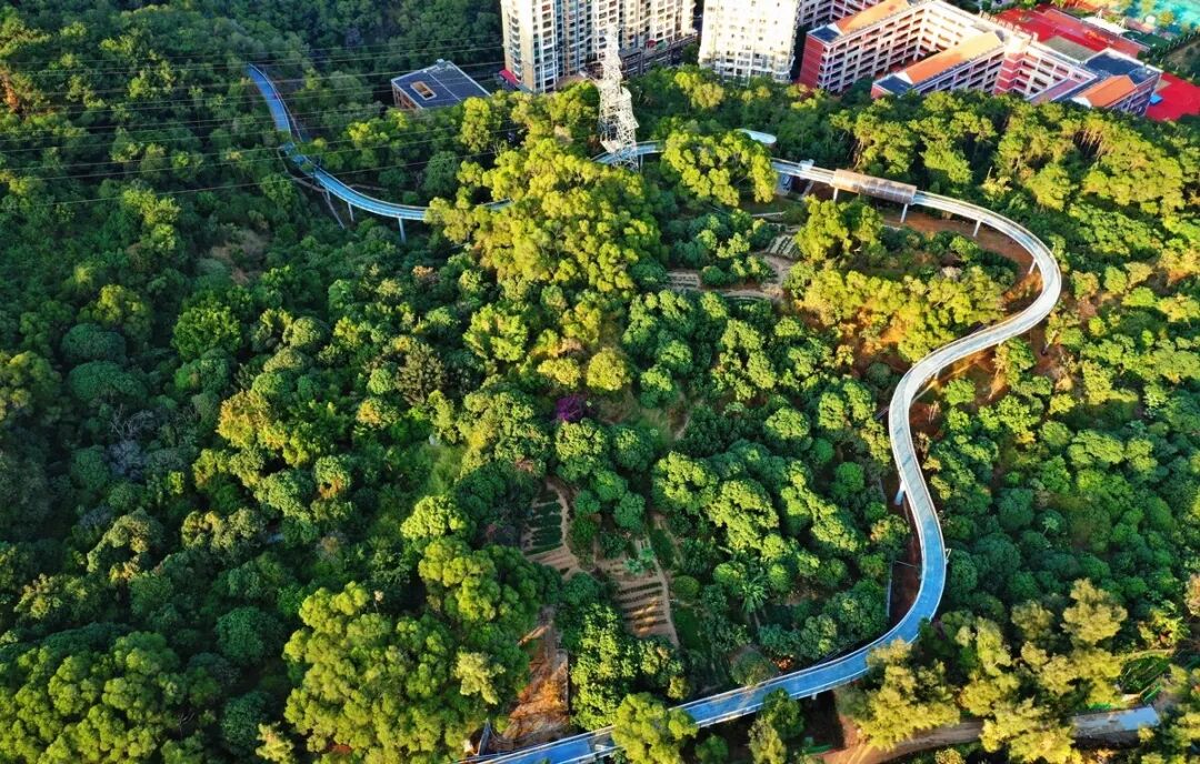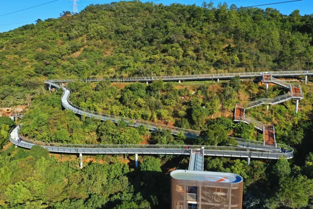 超炫酷高空徒步道除了杉树式红叶谷升降机塔、螺旋形斜坡徜徉在高空,穿行在林下