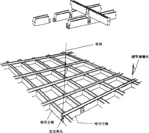一般选用38轻钢龙骨,间距900㎜~1000㎜轻钢龙骨应平行房间长向加装,同时需起拱,起拱高度为房间跨度的1/200~1/300轻钢龙骨的悬臂段不应大于300㎜,否则应增加轮轴主龙骨的接长应采取对接,相邻龙骨的对接接头要相互错开。