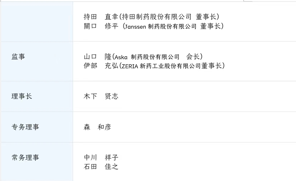 千寿生物科技株式日商眼科1991EPS控股株式日商生物制药品产品、保健产业1941卫材株式日商神经病学、胃肠病学以及肿瘤学1896田边离心机离心机1907API株式日商生物制药品、保健食品OEM1968韩国富山化学