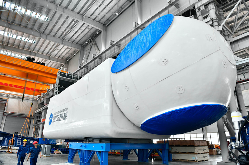 明阳智慧能源集团股份高端海洋装备制造产业园里,大型风机部件正在加快建造,为山东半岛南海上风电基地U场海域项目提供配套服务项目相关负责人于鹏介绍,眼前的这台风机由成千上万个精密零件组成,安装精度达到了“塞不进一根头发丝”。