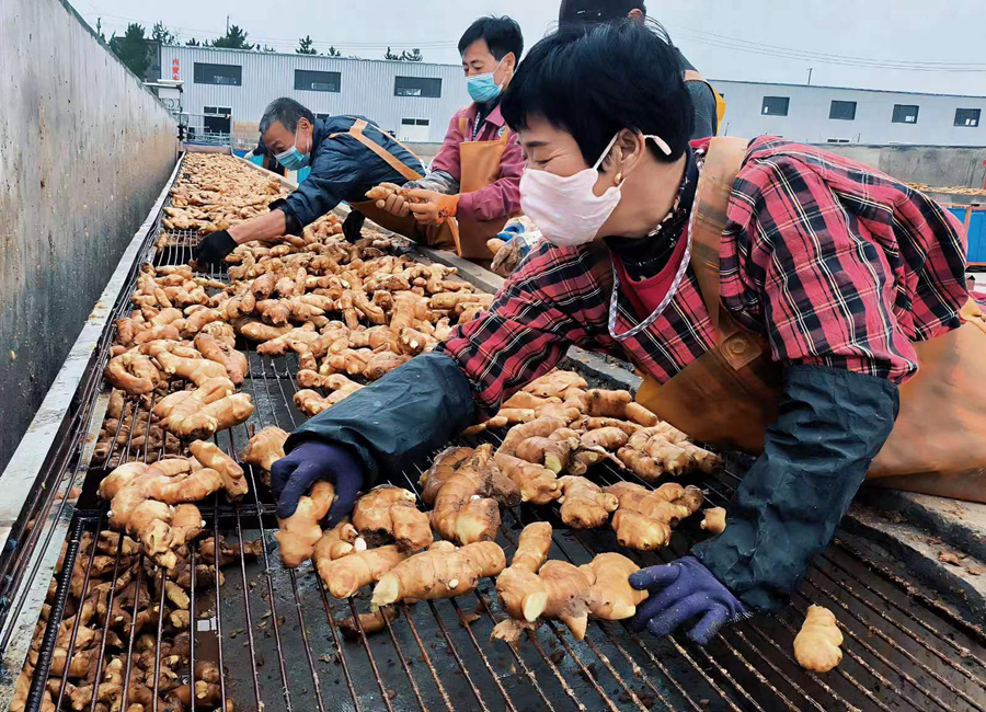 在乳山市大姜交易市场内,农户正忙着清洗鲜姜 随着农业产业化加快发展,乳山市在推进农村体制改革、优化农村经济结构、创新农村发展模式方面积极探索,全市农村经济总收入、农民人均纯收入较30年前分别增长了22.9倍和13.1倍;村级集体经济收入实现10万元以上村全覆盖,收入50万元以上村占比达33.6%。