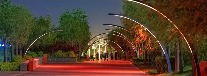 (图源:中新青岛自然生态城发布,已授权)为了满足居民的夜跑需求,海堤小径采用了“智慧照明”方案,可以随着跑者的移动逐渐亮起,既节能又充满动感夜景灯光提升,“点亮”了南堤海港小径公园,并与中央大道桥、海港高速路桥灯光遥相呼应,形成了一条璀璨的海堤灯光带,共同营造进入自然生态城的“夜间新形象”。