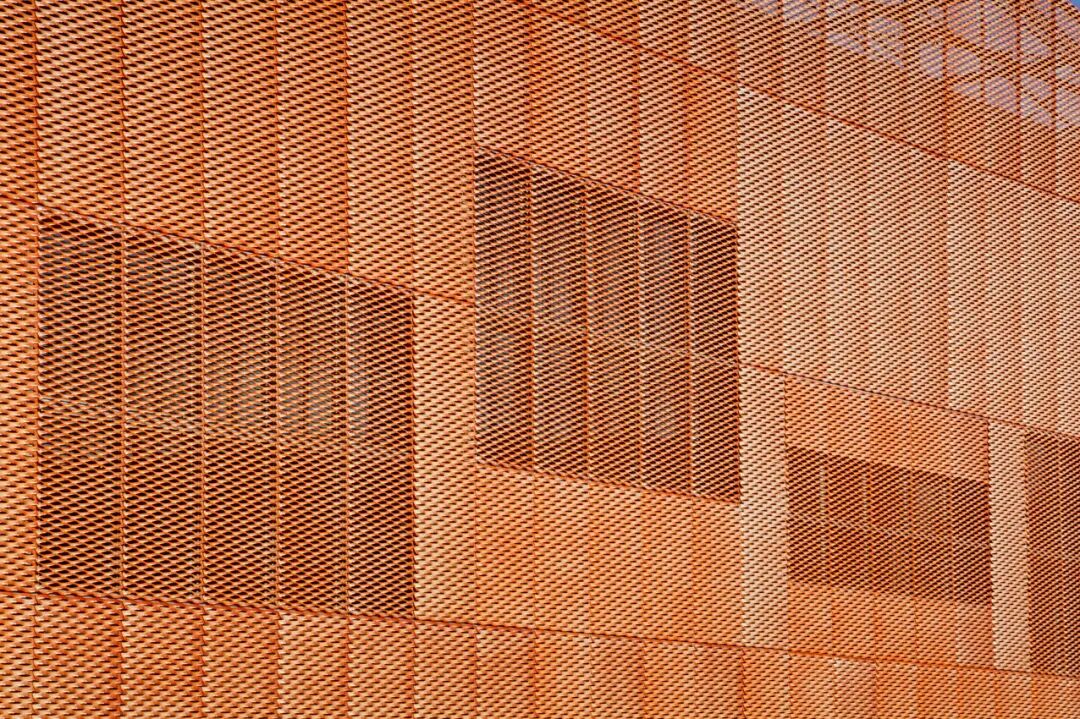 建筑物师使用了一种特殊的清漆,其半透明的特质可以完美地展现碳纤维的光泽感制造商在铝材中加入含有铜粉的颜料,使其具有特殊的色彩由于颜料的挥发性和操作的难度,让这一工序的实施必须非常精细小心,整个过程使用了几种相同的样板,终于塑造出了这面闪闪发光的表皮。