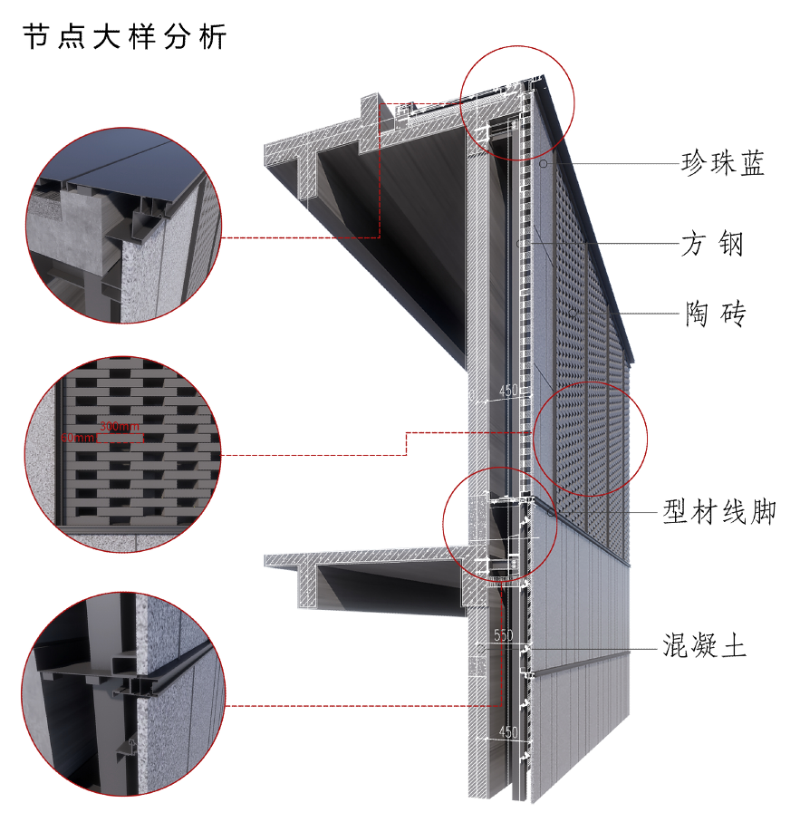 02. 金属材料与结点关键字 | 陶砖 万雅 实木金属板金属材料的优先选择下定决心了建筑物的魅力呈现出我们试著了多种不同金属材料和女团形式最后挑选出陶砖、实木、滑石四种借以抒发莆田邻近地区的建筑物现代