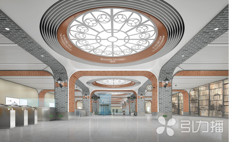 文昌阁承载着无锡古城厚重的人文底蕴,是无锡古城的标志文昌阁站的结构设计端庄大气,美感以浅栗色和白色为主,地铁站整体内部空间构成是苏式建筑的提炼,在顶面还饰有古典写意园林建筑的白描图画,充分体无锡古城的独特气质拙政园站