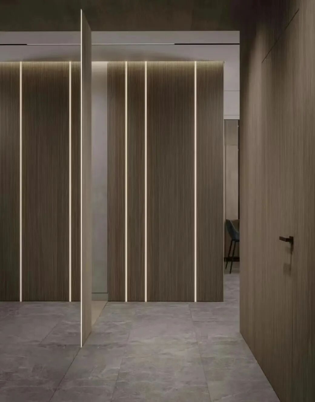 做为护墙板的时候,可以较好的弥补墙面留白时的空旷感,提高听觉观感体验。尤其时大面积竖向的前大灯,兼具时尚气息与朦胧之美,还能起到划分内部空间的作用。(4)局部装饰