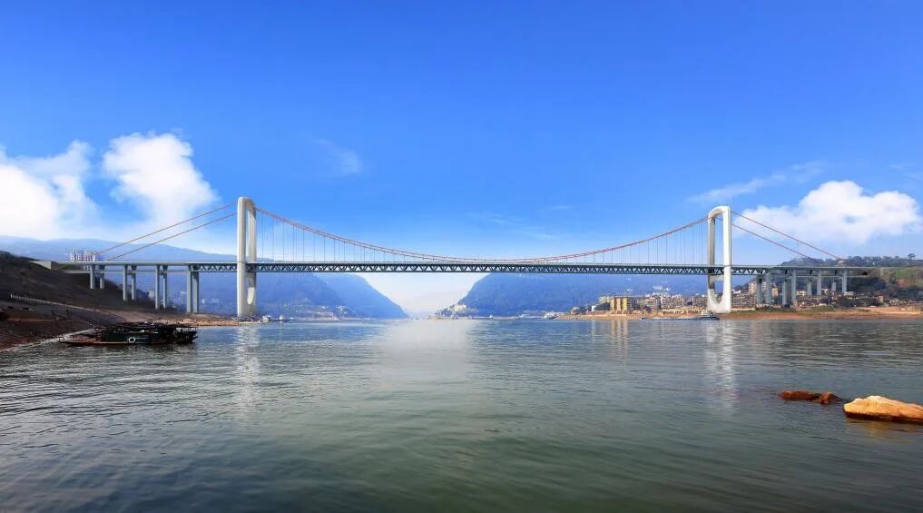 该项目线路全长12.7公里,路幅宽度41米,设计车速80公里/小时,包含郭家沱长江大桥和7个立交,总投资约85亿元大桥主跨跨径720m,为目前国内最大跨度的公轨两用悬索桥桥塔以“门楹纳水”为设计主题,将水的元素融入到传统的门式桥塔中,形成圆润的塔身轮廓,造型美观。