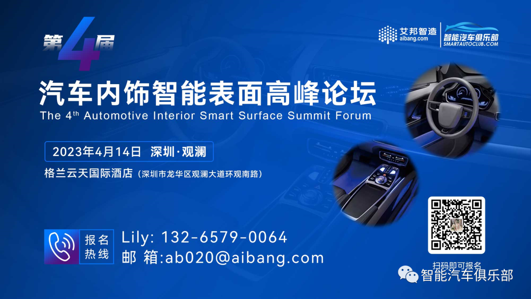 阅读原文即可加群活动推荐一:第四届电动汽车内饰智能化表面高峰论坛(4月14日 深圳)