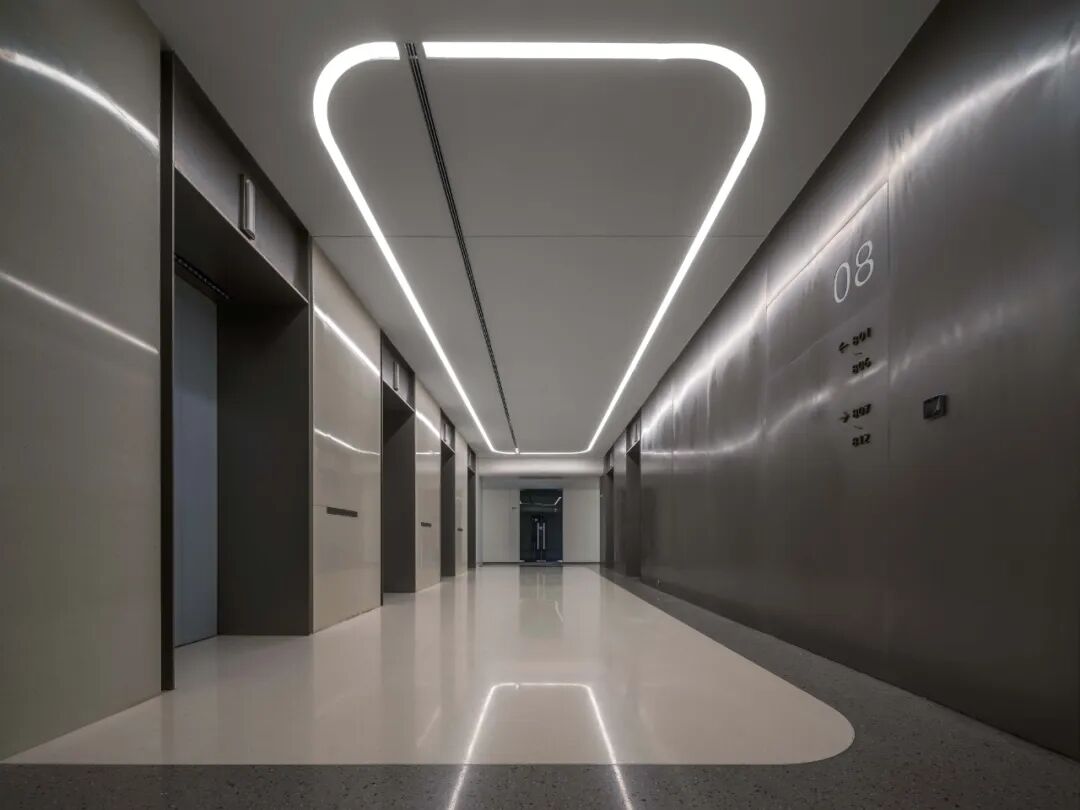 1#楼工程施工范围为2-3层的报告厅、升降机厅、卫生间、前厅等,家装面积约2310㎡,家装主要材料有:铝单板吊顶、石膏板吊顶、墙面不锈钢饰面、铝单板墙面、乳胶漆墙面、地毯、岩板地砖、木门、防火门、门槛石等电气主要材料有: