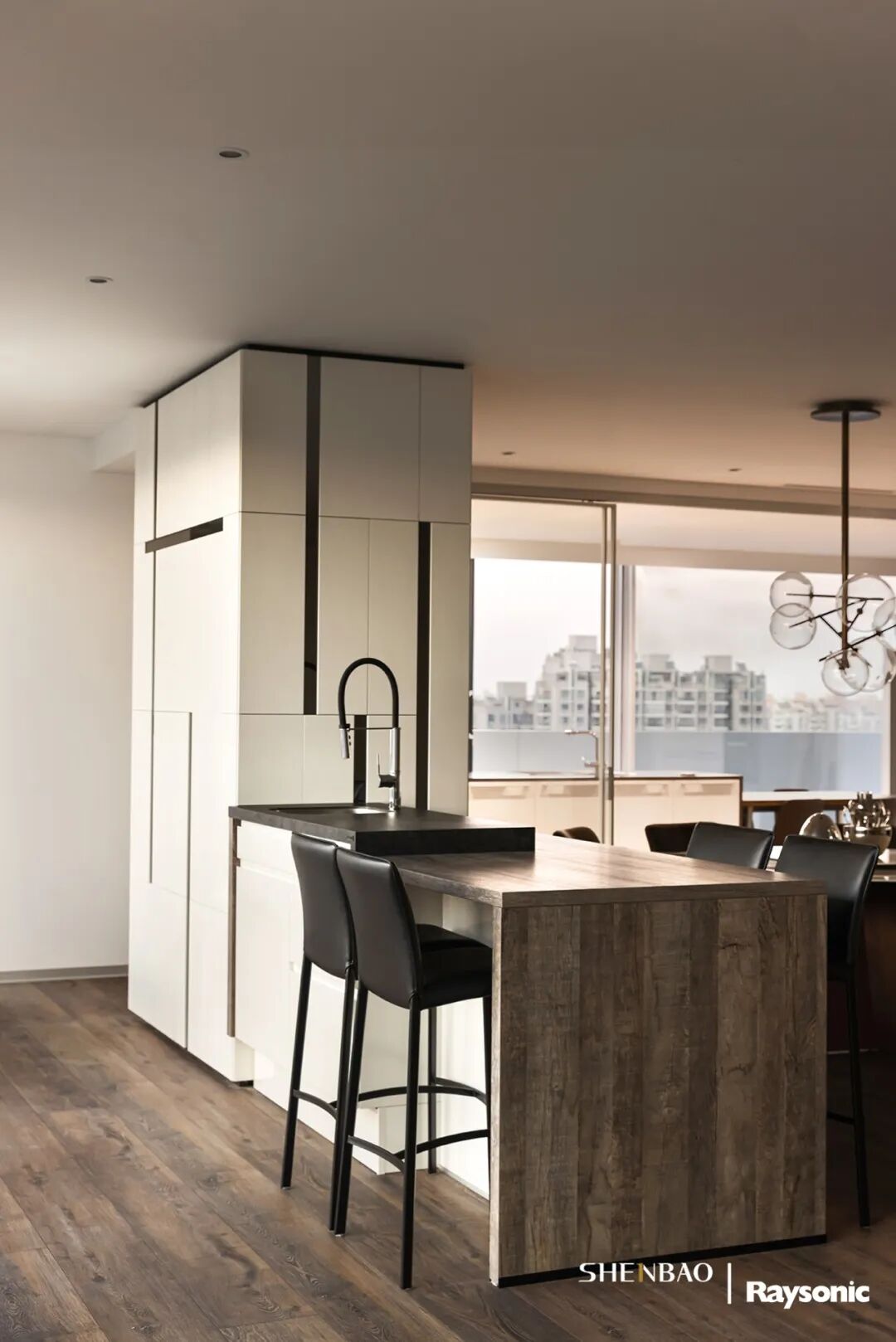 L006皮紋米白▲發揮培训基地優勢,將客廳、餐廳、西廚合三為一,讓光與影能反射到更进一步的層次。小體量收納的放至,在滿足日常生活市场需求的同時,維持空間盡可能将大的開放孔径。