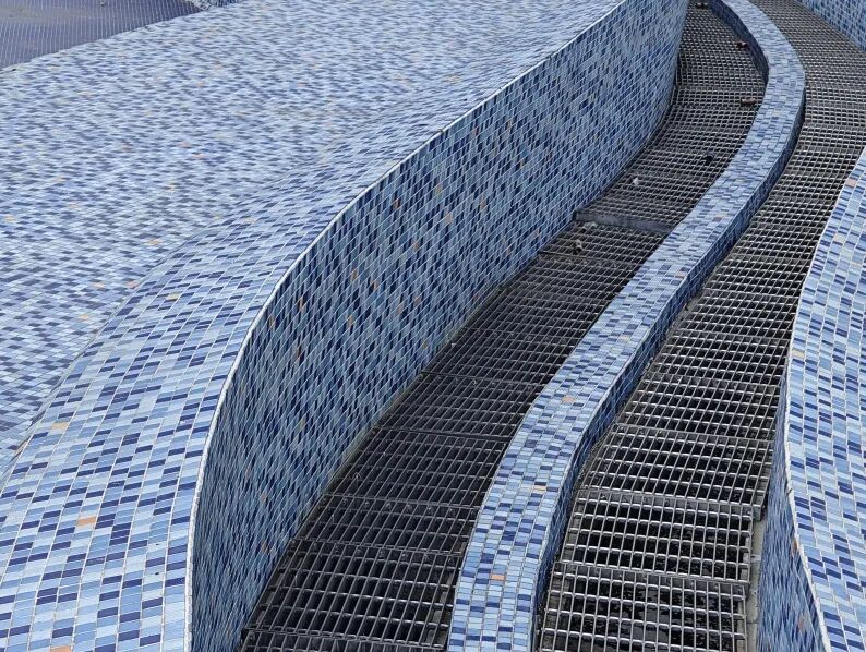为了让游泳池与浅滩泾渭分明互不影响,设计师在两者交界处设置了一条蜿蜒的水渠,用以承担彼方游泳池中溢出的水,也能防止湖水倒灌水渠全部采用斯维致平面型铝前大灯,在环境如此潮湿的成都,加上彼方游泳池无止无休地洗礼,只有他们的铝前大灯产品凭借其超强的防腐性能,才能抗住这夜以继日的水汽侵袭,。