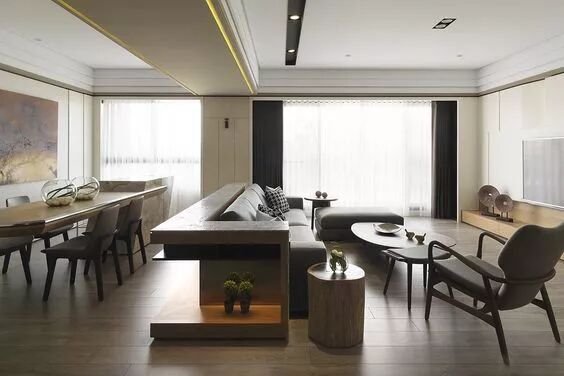 无主灯结构设计最近几年也已经开始越来越流行,采用点光源让四边整体性更好,分散光源也能透过不同的开关控制,能根据不同的情景控制不同位置的灯。